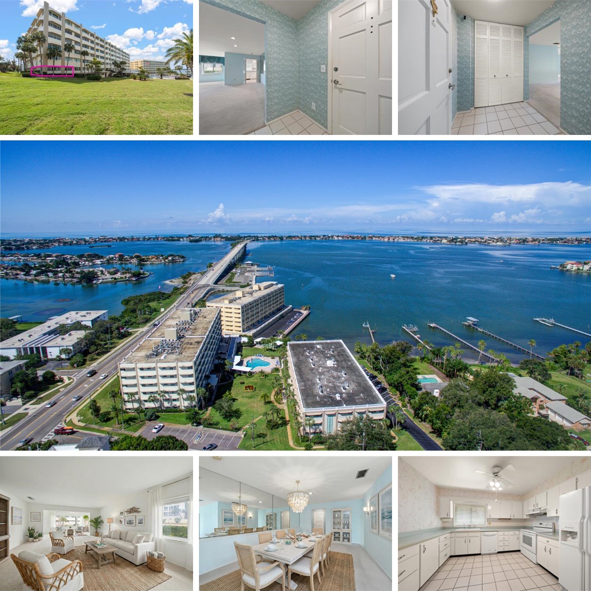 Welcome to effortless coastal living in this highly sought-after first-floor corner residence in the coveted Harbour Club Condominiums. This beautifully positioned 2-bedroom, 2-bath home is filled with natural light streaming through walls of windows, creating a warm and inviting ambiance throughout the spacious family room—perfect for both relaxing and entertaining. The bright white kitchen offers plentiful counter space and generous storage, making everyday living both functional and enjoyable. The light-filled primary suite provides a peaceful retreat with a large walk-in closet and a private ensuite bath featuring a walk-in shower. A versatile second bedroom, conveniently accessible from the den, shares a spacious hall bath with a tub/shower combination—ideal for guests or flexible living. Just steps from your door, enjoy the sparkling community pool where you can unwind poolside while taking in stunning Intracoastal views. Spend afternoons fishing from the community dock or take a leisurely stroll to nearby shopping and local restaurants. Ideally located near the Belleair Causeway for quick access to the beach, this inviting residence offers the perfect blend of comfort, convenience, and coastal charm.
